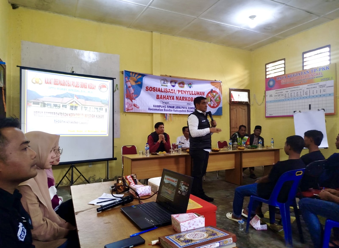 Redelong – Sosialisasi pencegahan bahaya narkoba bagi remaja dan pelajar kampung di Kecamatan Bandar, Kabupaten Bener Meriah, berlangsung Kampung Sinar Jaya Paya Ringkel, Kamis, 14 November 2024.