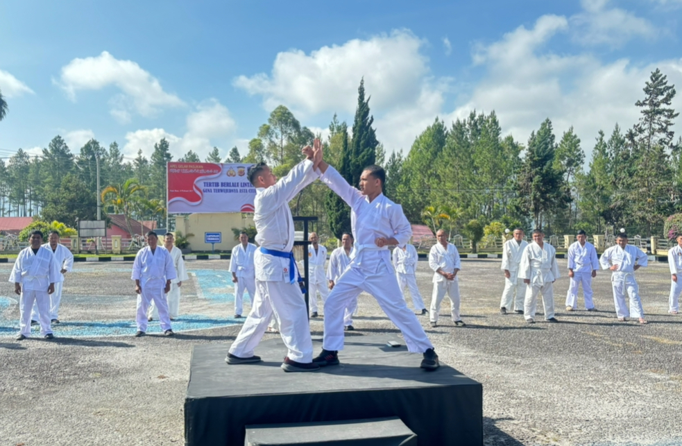 Redelong – Polres Bener Meriah gelar latihan beladiri Polri untuk mengusulkan Kenaikan Pangkat (UKP) di lapangan Mapolres Bener Meriah, Selasa (11/2/2025).