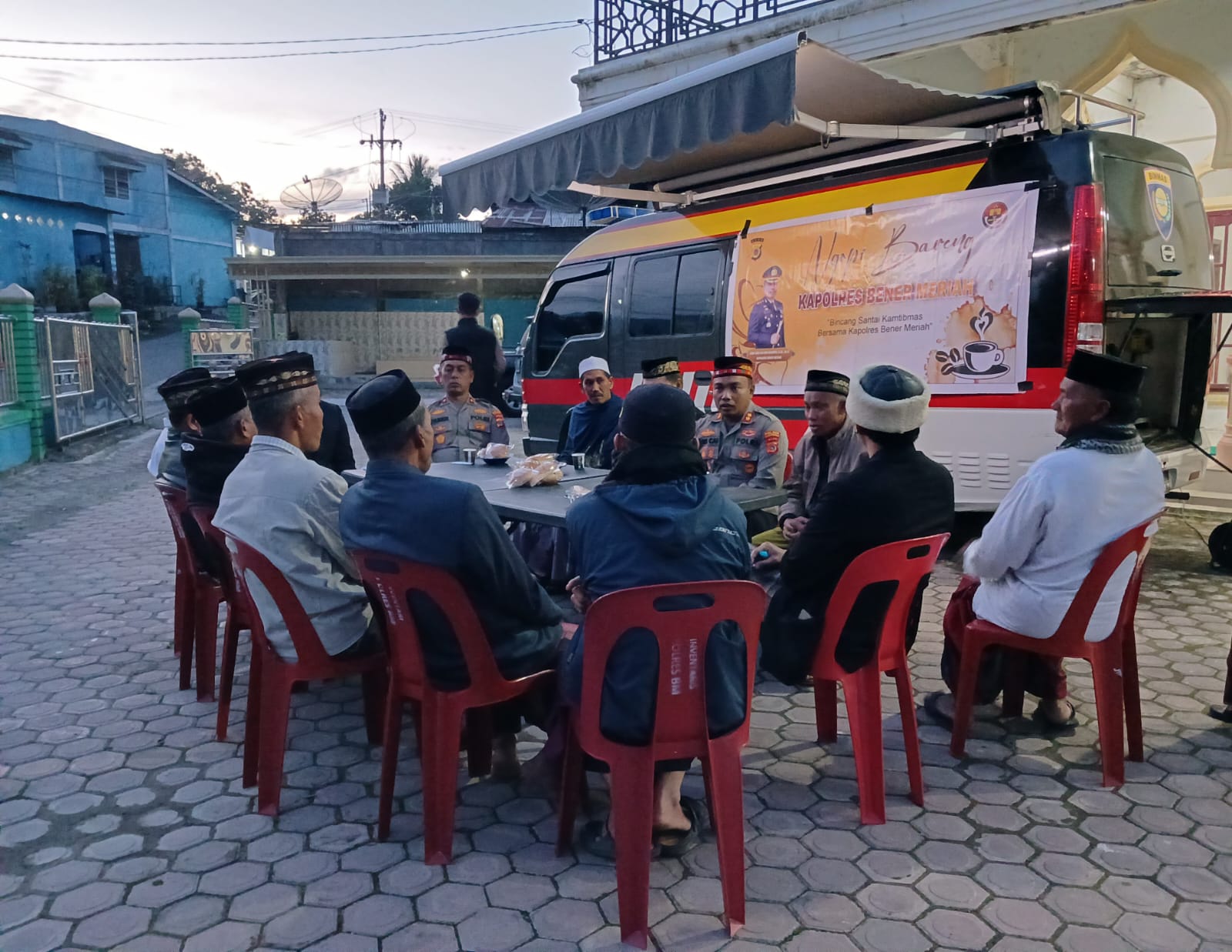 Bener Meriah – Dalam suasana pagi yang hangat dan penuh keakraban, Kapolres Bener Meriah AKBP Aris Cai Dwi Susanto, S.I.K., M.I.K., didampingi Wakapolres Kompol Drs. Syabirin, S.H., M.Si., serta para Pejabat Utama (PJU) Polres Bener Meriah, melaksanakan kegiatan Ngopi Bareng bersama tokoh agama dan tokoh masyarakat Kampung Tunyang Induk, Kecamatan Timang Gajah, Kamis (30/10/2025).