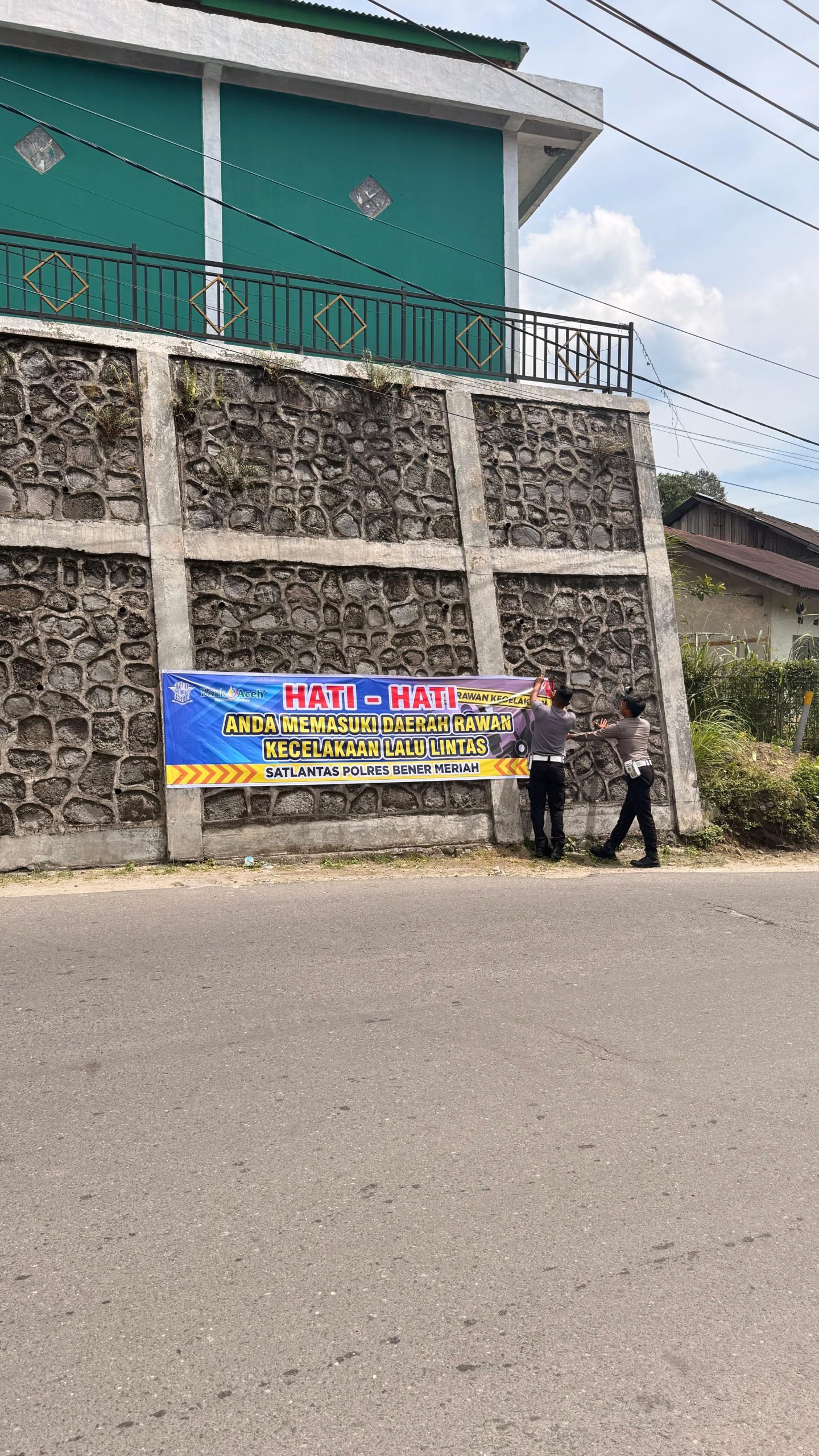 Satlantas Polres Bener Meriah Pasang Spanduk Himbauan Keselamatan untuk Cegah Kecelakaan Lalu Lintas